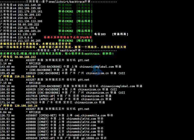 然后看看三网的回程,是不是看到都是9929优化线路?所以,如果有需要用到联通9929优化线路的联通用户选择是比较好的。