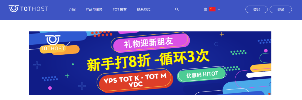 TOTHOST优惠码:HITOT 循环8折优惠码