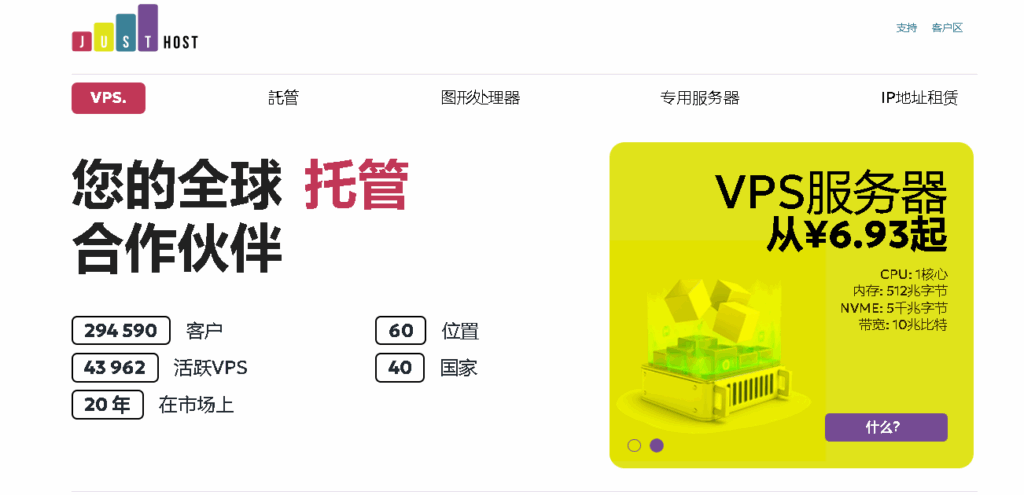 justhost成立于2006年俄罗斯老牌服务器商家,主要运作虚拟主机、VPS、独立服务器出租业务。重点介绍下VPS业务:底层KVM虚拟,硬盘分HDD、SSD、NVMe,提供200Mbps起步带宽,最高1Gbps,不限制流量,当前有40个可选数据中心,支持信用卡、PayPal、支付宝、银联、PerfectMoney、多种加密货币等多种付款方式。